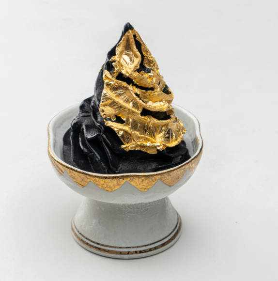 冰淇淋我們都經常吃,但是冰淇淋中還有貴族,吃的冰淇淋是把金結合一起,吃的是一種儀式或者是有錢。這個冰淇淋中是加瞭可食用的金,沒有什麼味道,隻是讓冰淇淋的品質更高看著更有檔次,價格翻瞭一倍。