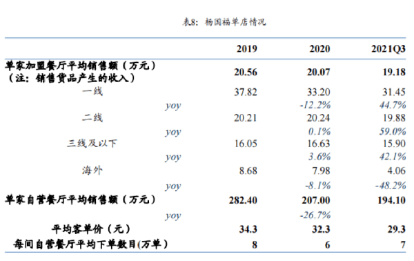例如楊國福,在2019年時,疫情剛開始,他們在一線城市的單傢自營餐廳平均銷售額是29.3元。