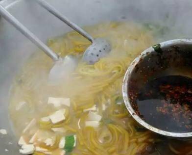 這樣的一碗粉有點像燴菜,也有點像胡辣湯,還有點像麻辣燙,做扁粉菜,要將豬血、豆腐和青菜,都放在一口大鐵鍋中煮。精髓在於辣椒,因此他們的辣椒味道很贊,食客多,供不應求,因此很多食客還沒等大哥做好,就提前來占座等著!