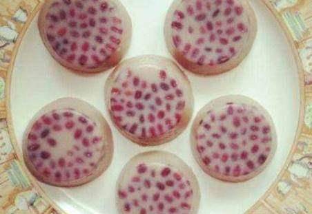 這一款缽仔糕是紅豆的,紅豆用清水浸三小時後,隔水蒸淋,粘米粉與澄面混合,以篩隔勻。徐徐加入1杯半清水開成糊狀。片糖以2杯半清水煮溶後,與紅豆一同加入粉糊中拌勻。將準備好水粉糊倒入已掃油之碗內,猛火蒸二十分鐘即成。嘗一口,軟糯可口,香甜美味。