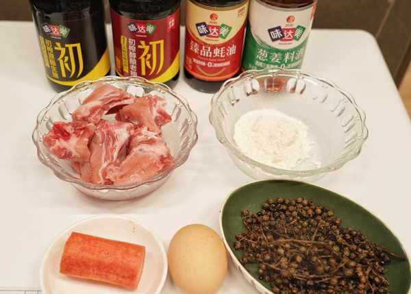 【花椒粒煎炸排骨】排骨6節,花椒粒40克,生抽15毫升,蠔油5克,胡蘿卜半根,老抽1.25毫升,料酒1.25毫升,面粉30克,雞蛋1個,植物油45毫升