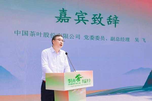 中茶公司副總經理吳飛在隨後的致辭中表示,茶行業是提高百姓生活品質的重要產業,也是助推經濟發展的富民產業。茶行業區別於其他行業的最大特點,就是紮根於鄉土之間,是茶企助力鄉村振興的最大優勢。“這既是社會對茶行業的期盼,也是我們這一代茶人應盡的責任。”近年來,中茶公司通過實踐摸索出具有中茶自身特色的“品牌拉動、茶葉帶動、科技驅動”的鄉村振興模式,聯合恩施、咸豐、利川等全國2州12縣打造出“山水中茶”系列產品,並用“中茶”品牌為其賦能增值,將鄉村好產品轉化為好資源、好財富,讓一片片“綠葉子”變成致富的“金葉子”。