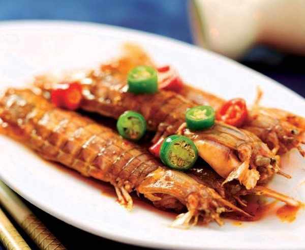 2 蝦爬子洗凈泥沙,放入鹵汁中,鹵約 10 小時,即可撈出擺盤,澆淋上原汁,撒上一些香菜段、薑片、蒜片、香蔥段、紅椒圈等,即可上桌食用。