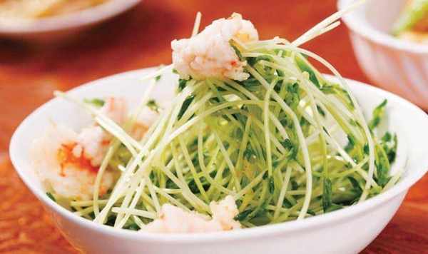 原料 豌豆苗 300 克,蝦仁 200 克,雞蛋清 2 個。