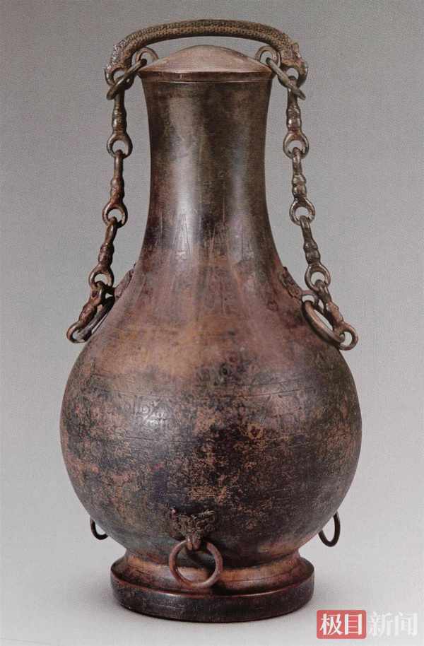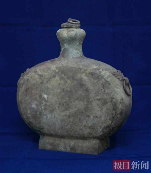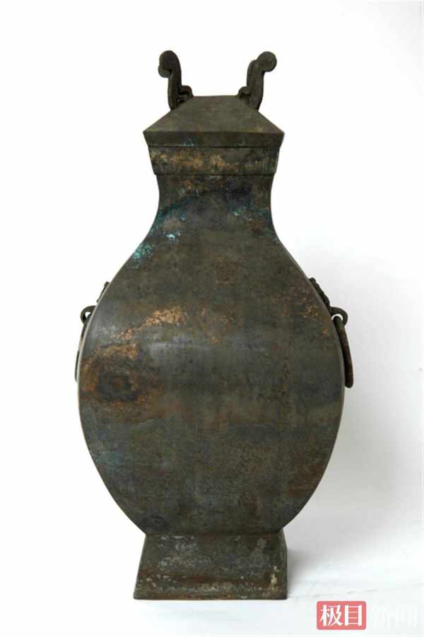 銅鈁,西漢初至漢高後五年十一月庚午日(公元前2世紀初至前184年12月26日),口邊長10.4厘米、腹寬22.1厘米、通高43.6厘米,2007年荊州謝傢橋1號墓出土。