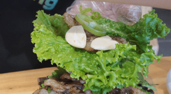 再配點生菜蘇子葉包肉