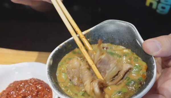 鮮嫩的牛舌蘸海鮮汁