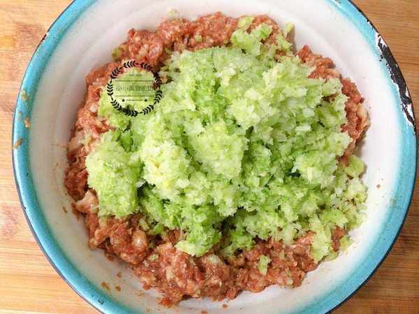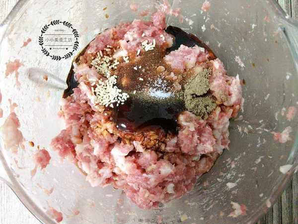 1、豬肉洗凈後剁成肉末,加入適量蔥薑水攪打上勁,然後加入蠔油,生抽,食鹽,五香粉和雞精攪拌均勻備用。
