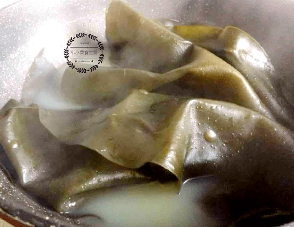 1、將海帶放入盆中浸泡變軟後,再放入熱水中焯燙片刻後撈出。