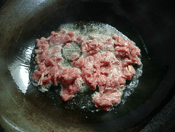 3、鍋中倒入適量油,放入牛肉炒至變色後盛出。