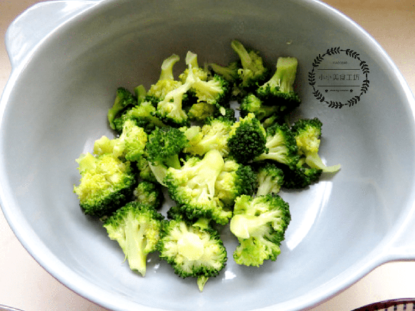 2、西蘭花切成小塊,放入熱水中焯燙變軟後盛出備用。