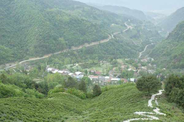 大傢登上茶園觀景臺,隻見茶山連綿起伏,采茶人背著竹簍,穿梭在滿目蔥翠的一畦畦茶田間,雙手上下翻飛在碧玉的茶樹中,忙著采擷春天。