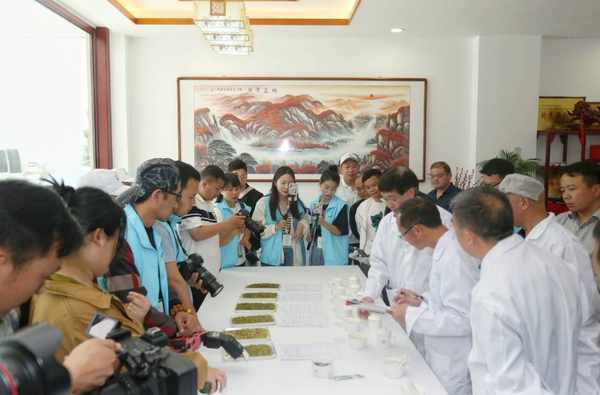 4月20日,第四屆陜西網上茶博會鎮巴專場活動進入第二天,由主流媒體記者、網絡主播、自媒體達人和茶葉采購商組成的探訪團一行走進瞭鎮巴縣鹽場鎮隆升茶業有限公司,國傢級專傢現場指導大傢茶葉評審,帶大傢共品一杯鎮巴黃茶。