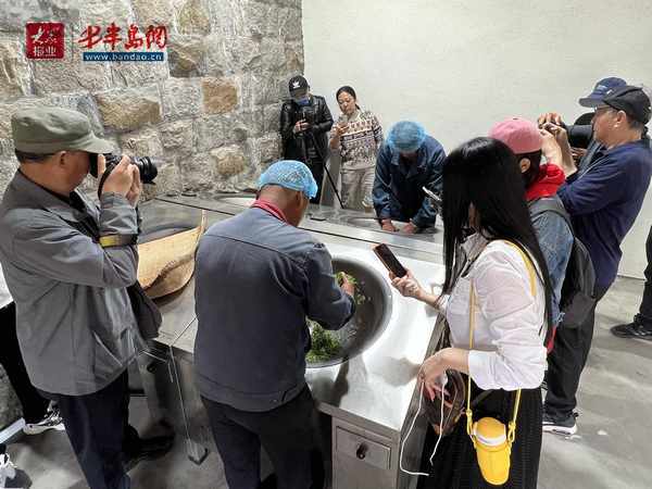 手工炒茶技藝是匠心之本,是現代炒茶技藝的“根”之所系。20日下午,采風團走進聖谷山1966茶博園的非遺工坊,現場參觀擁有30多年經驗的炒茶師傅用鐵鍋炒茶。
