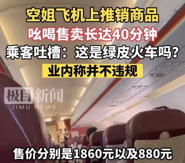 這年頭,坐飛機都像坐綠皮火車,能被推銷整整40分鐘。