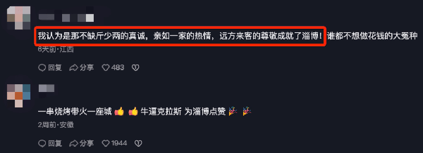 燒烤店主都開始“熱血”到,說自己不是為瞭賺錢,而是為瞭淄博的榮譽而戰。