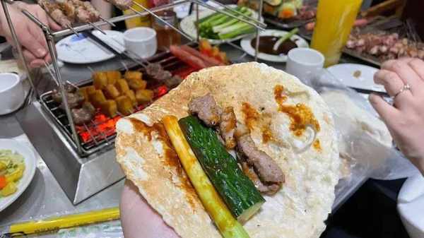 來的路上,甚至還要不斷練習專屬淄博TACO的手指舞,方便把串兒擼到餅裡。