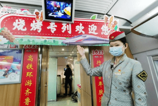 這趟高鐵就是最近瘋狂刷屏、火上熱搜的淄博燒烤專列——