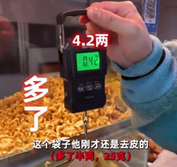 最令人驚喜的是,買小酥肉時他一稱,甚至還多出瞭4兩多。