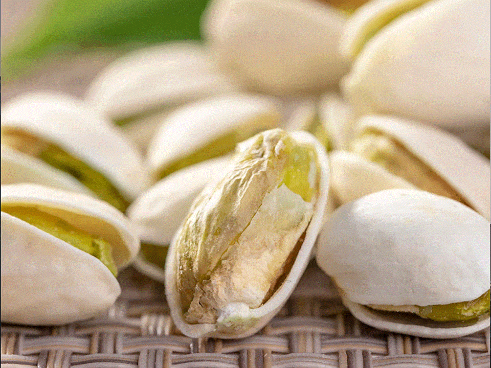 經過篩選的果實,粒大肉厚,開口率高,果形飽滿有份量,自然開口,嫩綠肉仁,追求自然好味。