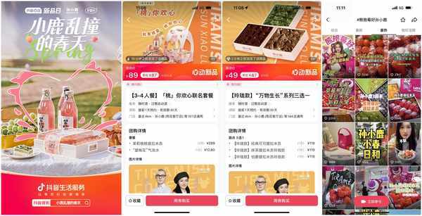 孫小鹿深知,對烘焙品牌而言,產品是留客根基,周期更新是常態,如何讓每一次的產品上新都能成為爆款是品牌推品都需要面臨的問題。在這一點上,孫小鹿選擇從平臺消費者角度出發,以熱點和“聯名效應”反哺新品影響力。今年3月,正值疫情後的春日出遊季,孫小鹿聯合抖音「心動上新日」平臺IP活動,推出“'桃'你歡心”及萬物生長2個系列套餐。借助達人擴傳和線下聯名主題店的物料鋪設,營造瞭濃濃的春日氛圍,在春天裡再一次收獲專屬於孫小鹿的春日浪漫;當然,這並不是孫小鹿第一次結合抖音生活服務平臺追熱點,去年國慶節期間,孫小鹿還特別上線表白祖國“73歲紅旗”提拉米蘇,滿足平臺消費者節日熱點下的情感表達。除瞭追一波平臺官方熱點,孫小鹿也會依托抖音生活服務資源力造節點,此前在2022年11-12月是品牌三周年,孫小鹿聯名抖音上話題曝光超過27億的“草莓熊”,在冬季推出“熊抱莓好”提拉米蘇套餐,通過達人短視頻的直觀展示,成功吸引瞭無數年輕用戶打卡,兩個月不到的時間內,就售出10萬個草莓款提拉米蘇,下沉城市的人群市場也被逐步打開。