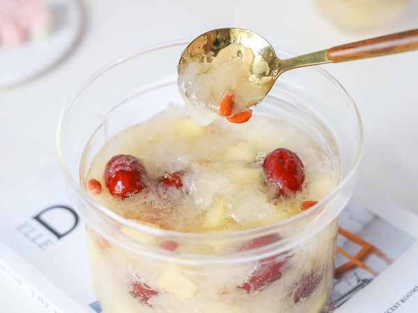 對於經常熬夜加班氣色差的女生來說,除瞭平常多運動鍛煉外,每天來碗銀耳湯,也是不錯的選擇!煎教大傢做一道美容養顏的蘋果銀耳羹,比面膜還有效,銀耳生津止渴,蘋果香甜可口,就很適合在這個幹燥的季節吃!
