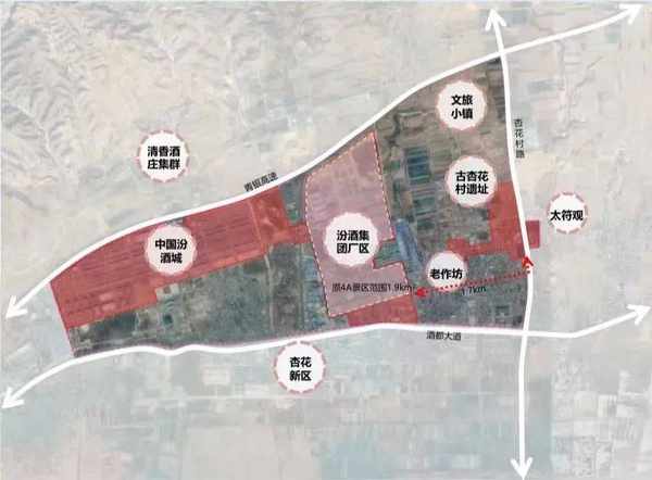 在汾陽政府的規劃中,“杏花村汾酒”專業鎮,將構建“一點兩軸三板塊”發展格局,即以杏花村遺址為原點,打造貫通東西的汾酒老作坊、汾酒集團、中國汾酒城、世界清香酒集群的“產業發展歷史軸”,貫穿南北的杏花村遺址公園、詩意杏花村、祭酒廣場、白酒祖庭博物館、醉美杏花村演藝中心的“文化演繹歷史軸”,形成詩意杏花村、文旅杏花村、產業杏花村三大板塊。
