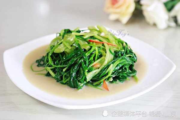 【食材】:空心菜 適量、蒜末 適量、鹽 少許、腐乳 2塊、