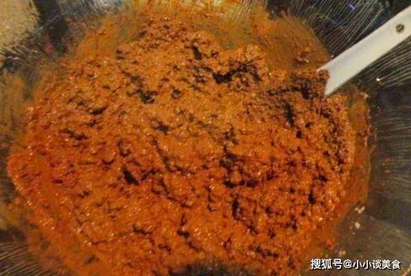 第三步:用辣椒的時候,最好用辣椒粉,然後做點藥明。藥明做好後,磨細一點,然後倒入放有辣椒粉的碗裡,拌勻,拌勻,再加入一大勺精鹽,再淋上一點白酒。