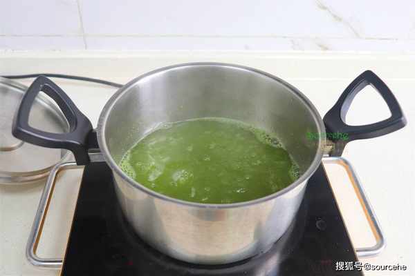 步驟4:抹茶在鍋裡攪拌均勻之後,再次煮沸,如果有漂浮物,需要用漏勺撈出來。