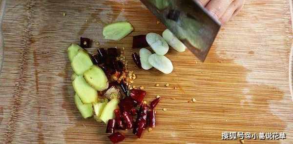 2、幹辣椒切成2厘米長的段,薑蒜切片,越薄越好。