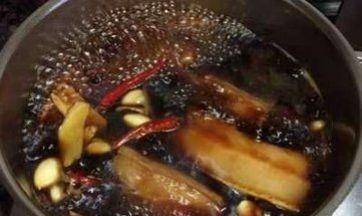 第二步,在鍋中加入適量的煎炸油。當油為60%時,加入切碎的薑和洋蔥翻炒,不斷攪拌,直到香味四溢,然後取出並丟棄。然後加入砂糖,用大火慢慢炒至完全融化。待鍋呈紅褐色時,加入生抽和料酒,繼續上色均勻,再加入適量的熱水,加入桂皮、茴香、丁香、桂皮和月桂葉。在高溫下煮沸。