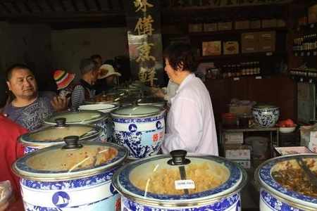 揚州醬菜是一道產於江蘇省揚州地區的特色傳統醬菜類美食。是宴席上的調味佳品,也是日常生活中佐餐的美味,具有鮮、甜、脆、嫩的四大特點,名揚四海,暢銷國內外。揚州醬菜歷史悠久,問世於漢朝,發展於隋唐,興盛於明清。揚州醬菜有乳黃瓜、寶塔菜、蘿蔔頭、嫩生薑、甜醬瓜、香心菜、什錦菜、宮廷龍鬚等數十個規格品種。