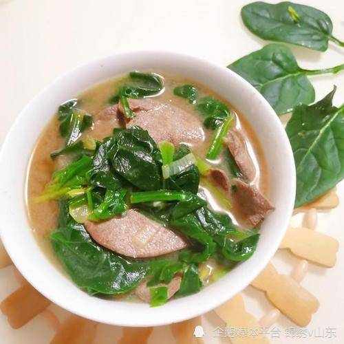 做法:將豬肝、菠菜分別洗幹凈,豬肝切成均勻薄片,菠菜切成段,將清湯放入鍋內燒開後,下入豬肝、菠菜,加入味精、精鹽,待湯再開時,淋上少許麻油即成。佐餐食用,適量。