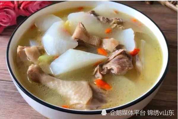 3、接著放入白蘿卜繼續燉煮半個小時。燉煮好瞭之後,加入食鹽和雞精調味,煮入味後撒上枸杞子即可出鍋開吃。
