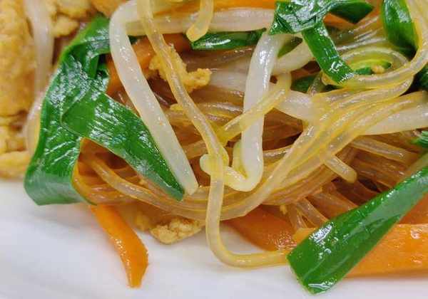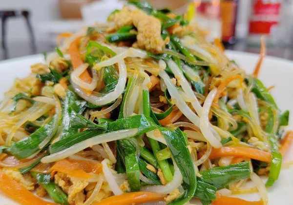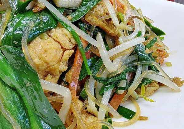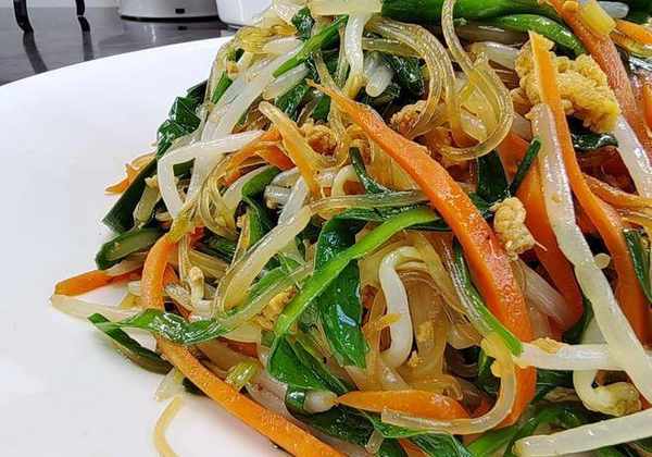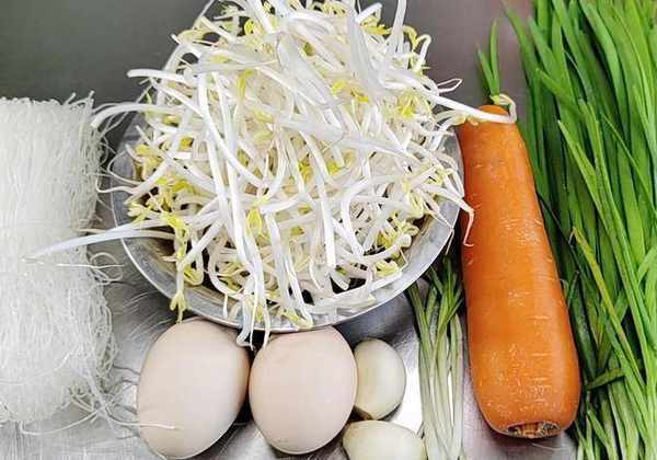 【主料】:韭菜100克、雞蛋2個、綠豆芽100克、粉絲50克。