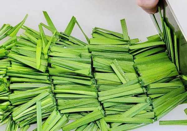 2、最好吃的韭菜一定是春天的頭茬韭菜,頭茬韭菜有一個很明顯的特征,那就是靠近根部的顏色是紅色的,這種韭菜是最嫩最鮮美的,這也是真正意義上的春韭。先把韭菜不好的葉子擇去不要,再用清水多清洗幾次後控水,韭菜外表的水分一定要控幹些,這樣在炒制的時候也就沒那麼多水。