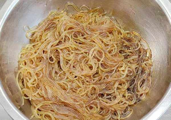 1、炒合菜一般會用到粉絲,這個是龍口粉絲,要提前用清水把粉絲泡軟,用冷水大概要40分鐘以上,用35度左右的溫水大概隻要20分鐘左右,但不建議用開水泡,那樣會失去韌性和口感。
