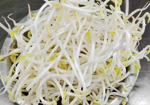 3、炒合菜一般用到的豆芽都是綠豆豆芽,因為綠豆豆芽更細,也就是說更容易成熟。先把綠豆豆芽的根部掐掉,根部既影響口感,也影響美觀。去根部後再用清水多清洗幾次後控水備用。