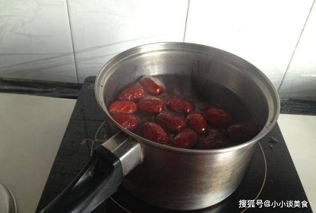 第三步:大傢最好前一天晚上把黑豆和紅豆泡好!將準備好的紅棗洗凈,將紅棗洗凈後切成片,這樣可以充分發揮紅棗的營養價值。當所有的材料都處理好後,就可以煮粥瞭!將泡好的米放入鍋中,倒入少許水。