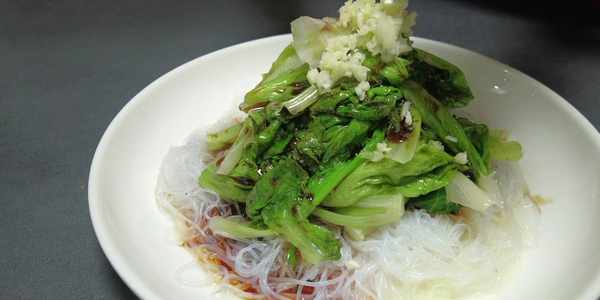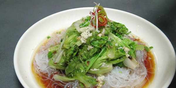 生菜燙至完全斷生後迅速撈出控幹水分,碼在粉絲上面。