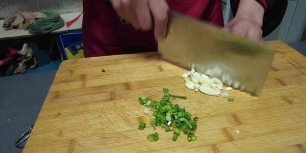 消除切成蔥花,蒜瓣剁成蒜末,