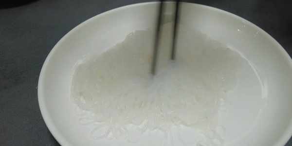 鍋內加入開水,倒入粉絲焯水,水再次燒開迅速撈出。