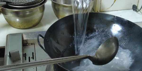 水再次燒開後,放入生菜洗個熱水澡,