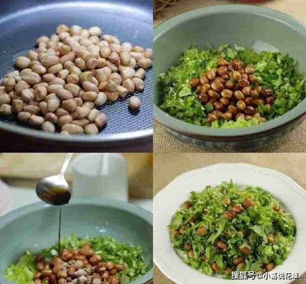 生花生在平底鍋中加少量油煎熟,放涼待用。同時,切碎一把菊苣和兩個青椒,切丁,放入花生,倒入一勺蠔油,一勺鹽,一勺醋和一勺海鮮醬油,拌勻即可上桌.花生松脆,菊苣爽口,非常好吃。