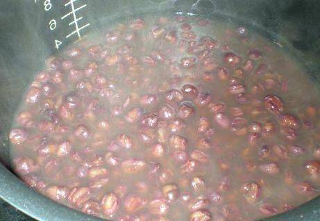 制作過程:第一步是將紅豆和紅豆用水浸泡一夜。豆子泡好後,放入鍋中開始泡一個小時左右。