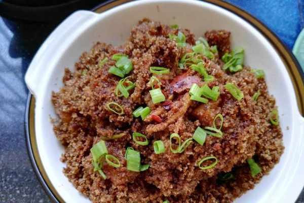 這邊的人們做粉蒸肉就是在每年的六月份左右,也就是剛入夏的時候,傢傢戶戶喜歡做米粉。將八角大料以及所有的香料在鍋中炒熟,並放入碾碎器中研磨成粉狀,再將新鮮的五花肉裡面加入以上的調料,放入各種醃料,加入特制的米粉攪拌均勻,放入蒸鍋中開始蒸,做起來很簡單,吃起來太好吃瞭,根本停不下來。