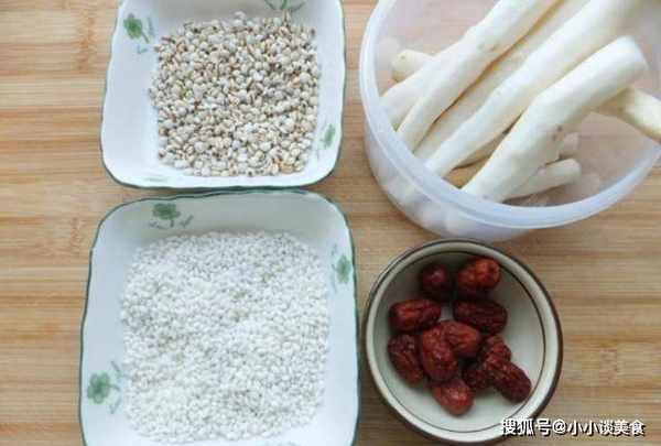 首先準備好所需材料:山藥、薏米、糯米、大棗
