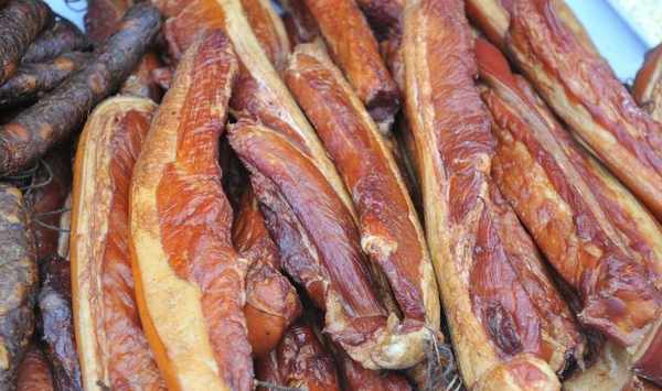 老臘肉表面油亮光滑,聞起來有著清香的樹木煙熏風味,吃起來也是入口順滑,咸香可口,回味綿長,難怪這麼多人喜歡。