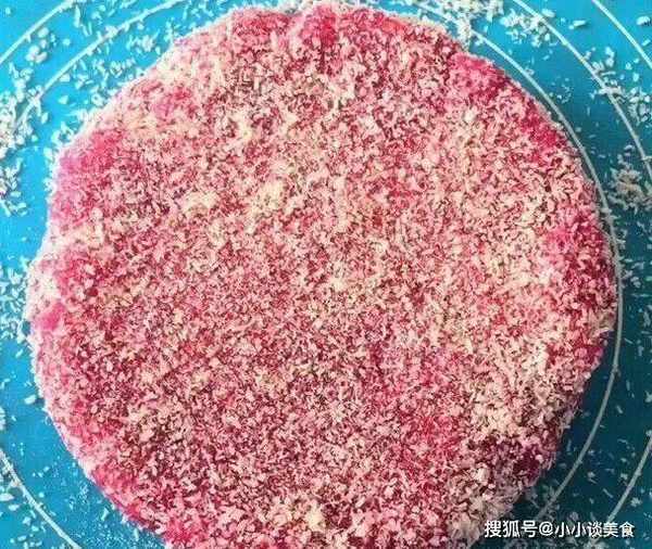 6、放入冰箱冷藏4小時後取出,上面撒上一層椰蓉。